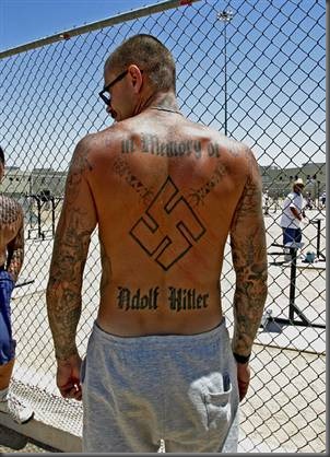 Assistindo a um programa sobre as prisões americanas no canal Foxcrime, me dei conta de que os presidiários americanos acabam por ser criaturas mais honestas e dignas que os defensores do "multiculti" e da mistureba... O primeiro critério de afirmação, separação e auto defesa por eles adoptado é o da RAÇA, o segundo; o imperativo da marginalização e segregação do fraco dentro de cada grupo, esmagando-o até que se torne forte e conquiste o respeito dos demais, ou então até que quebre de uma vez, enlouqueça ou morra. Sem dúvida que essa escumalha delinquente e decadente de brancos, pretos e chicanos têm muito a ensinar aos canalhas demagogos que governam o mundo e promovem o declínio dos povos.